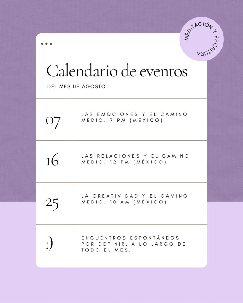 - Formarás parte de una comunidad personas maravillosas interesadas en meditar y escribir para vivir con más calma interior
