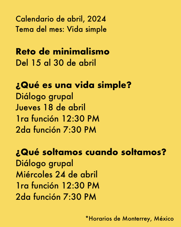 Adicional al grupo de Telegram tendremos 2 encuentros por Zoom para dialogar acerca de Qué es una vida simple y Qué soltamos cuando soltamos
